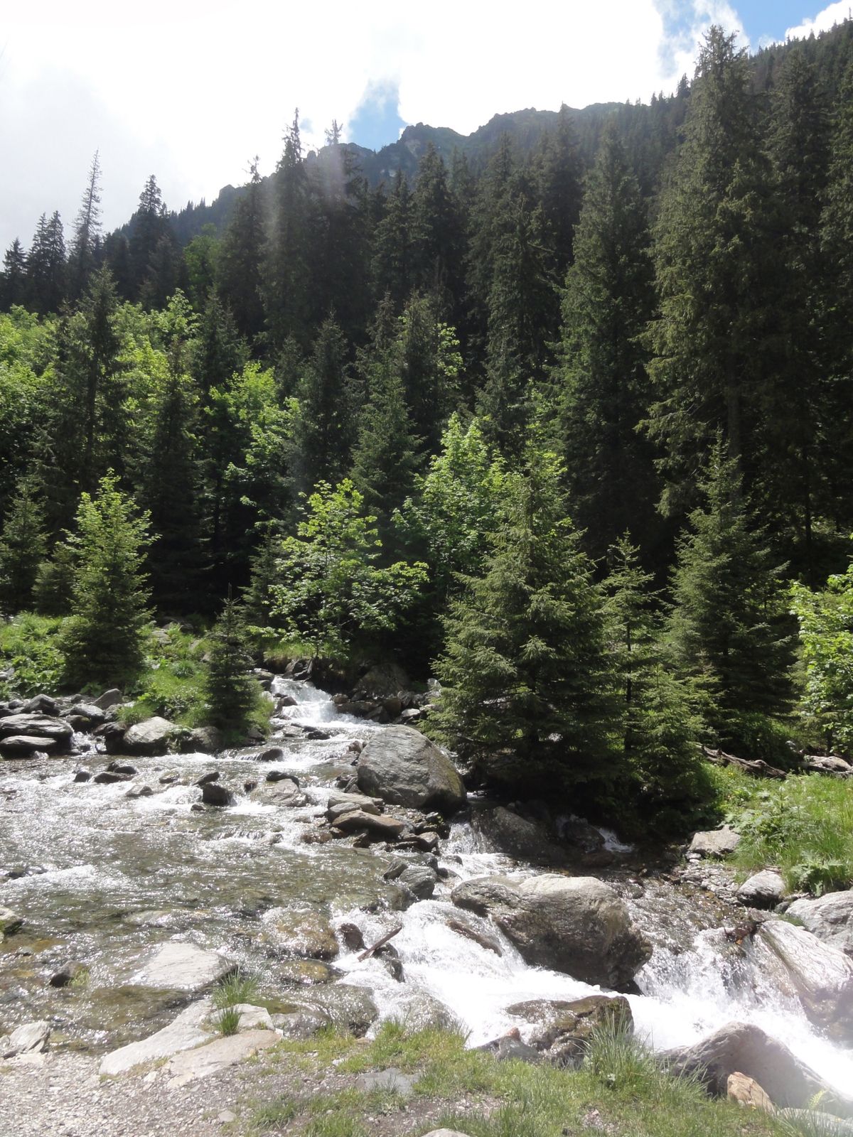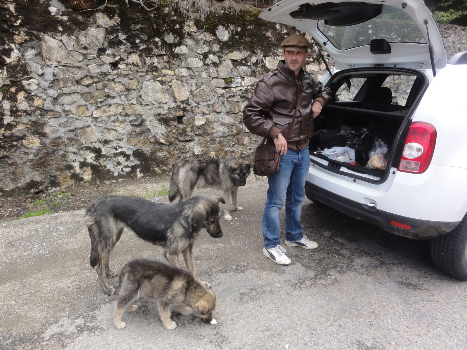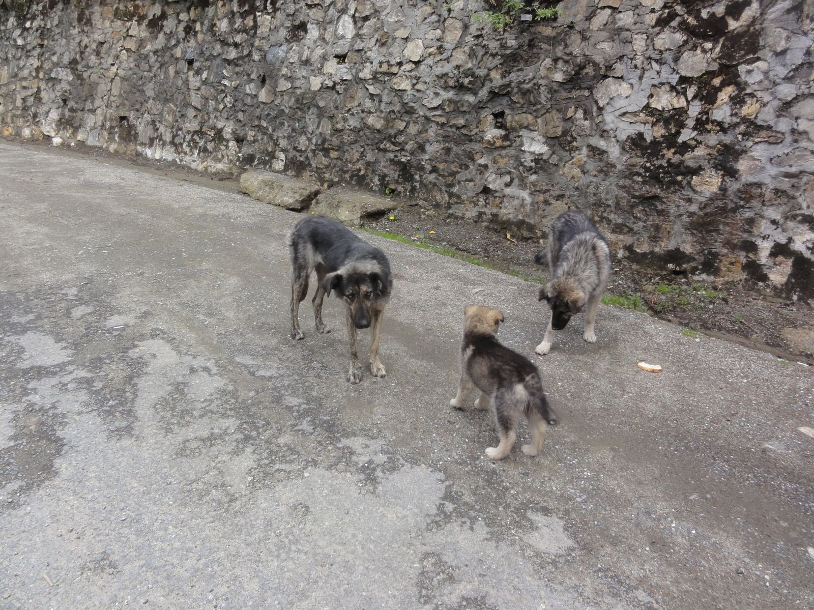 Visiblement on peut camper près du torrent. Quelques petites échoppes permettent de manger un morceau et boire un verre. Nous avions acheté du pain et du fromage au lac, l'un des deux fromages étant franchement dégueu il a fait le bonheur d'une famille de chiens errants.